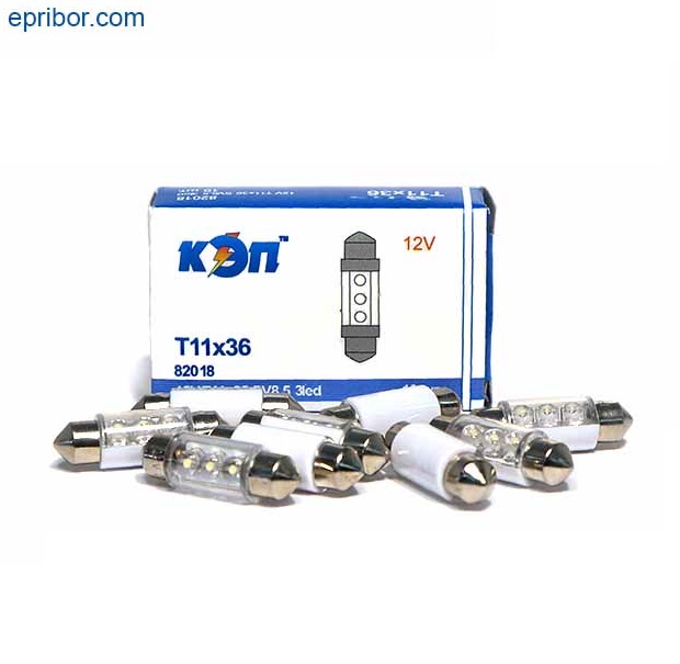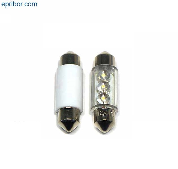 Автолампа 12V T11x36 SV8.5 3led (T10x36) светодиодная. Предназначена для освещения салона автомобиля и подсветки номерного знака.