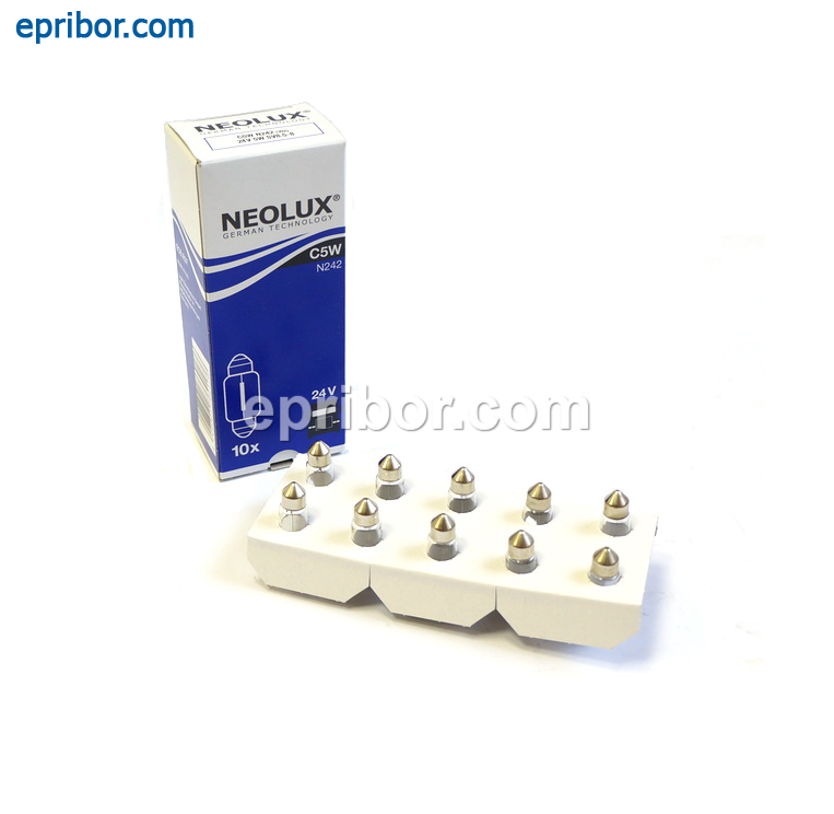 Автолампа 24V С5W (SV8.5-8) АC24-5 софитная. Предназначена для освещения салона, номерных знаков.
