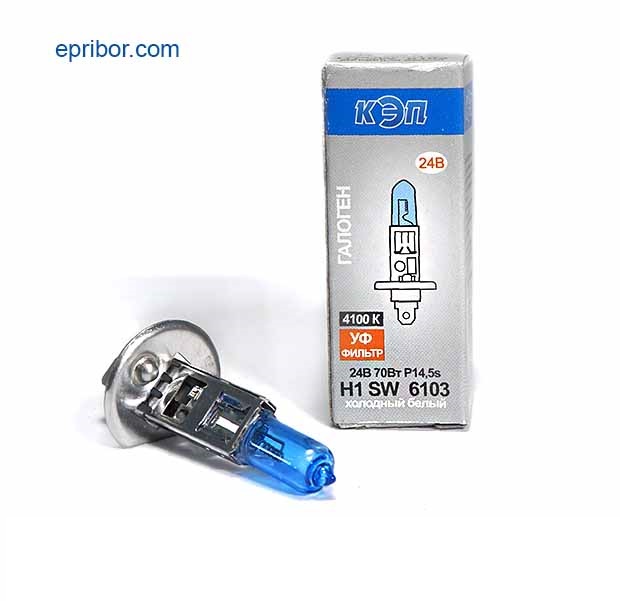 Автолампа АКГ 24-70 Н1 Super White P14,5s автомобильная кварцевогалогенная лампа холдного белого света,