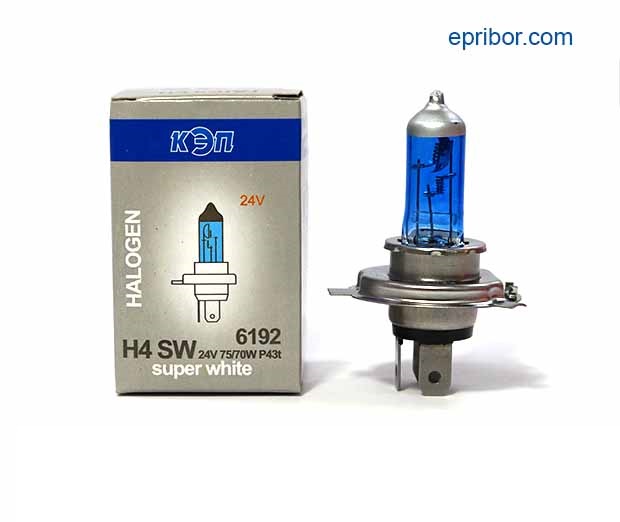 Автолампа АКГ 24-75+70 Н4 Super White (софитная) P43t автомобильная кварцевогалогенная лампа холодного белого света - псевдоксенон, применяемая при любых погодных условиях, обеспечивая безопасность и комфорт движения. Лучше освещают дорогу и предметы на дороге, чем стандартные лампы. Соответсвует стандартам европейской экономической комиссии (ЕЭК).