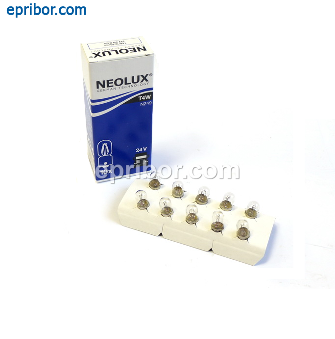 Лампа накаливания автомобильная 24V T4W 4w (BA9s) А24-4) с металлическим цоколем (исполнение патрона BA9s). Внутренее освещение салона, освещение номерного знака, подкапотная лампа. Для фонарей с функциями: сигнал торможения, габаритный огонь, задний ход, стояночный огонь, указатель поворота (поворотник).