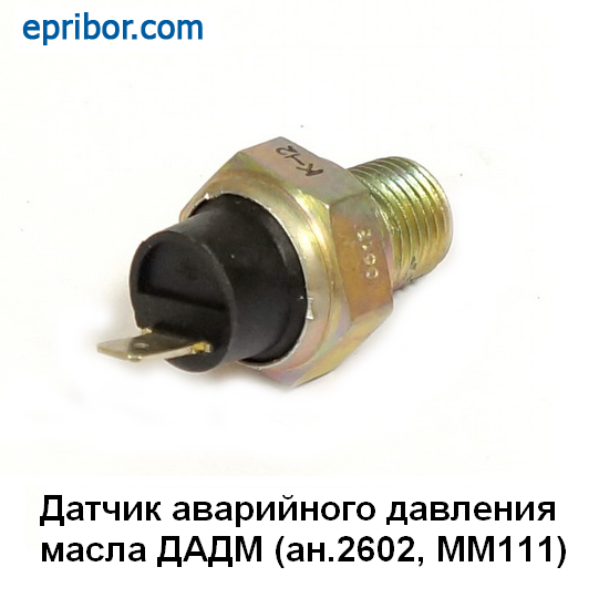 Датчик аварийного давления масла ДАДМ предназначен для включения (выключения) сигнальных ламп при падении (подъеме) давления масла в системе смазки двигателя транспортного средства.