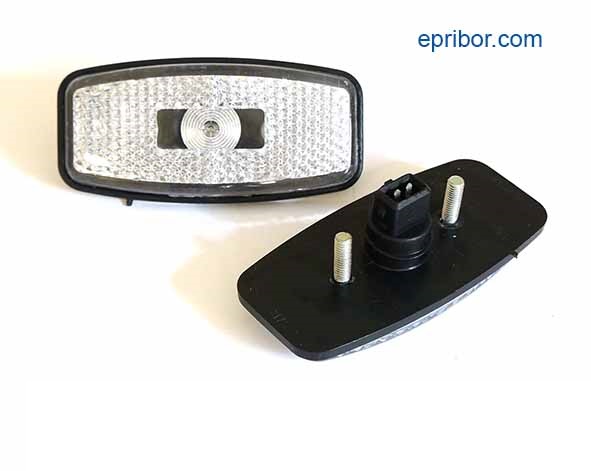 Боковой габаритный фонарь белого цвета прямоугольной формы со скруглением (напряжение 12/24В), предназначен для установки на грузовые автомобили и прицепы К-, ПАЗ, Урал, ТОНАР, Автобусы.
