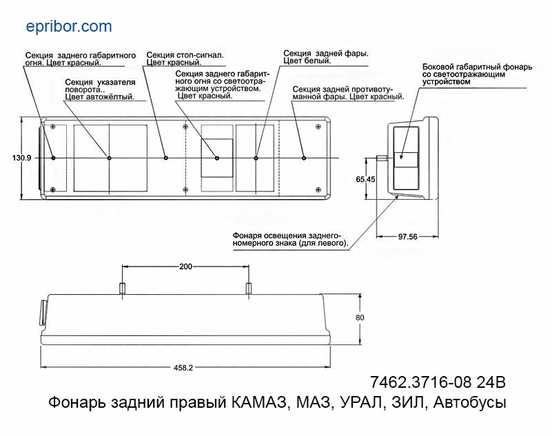 Фонари серии 7462.3716-08 предназначены для установки на автомобилях, прицепах и полуприцепах.