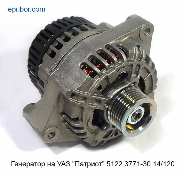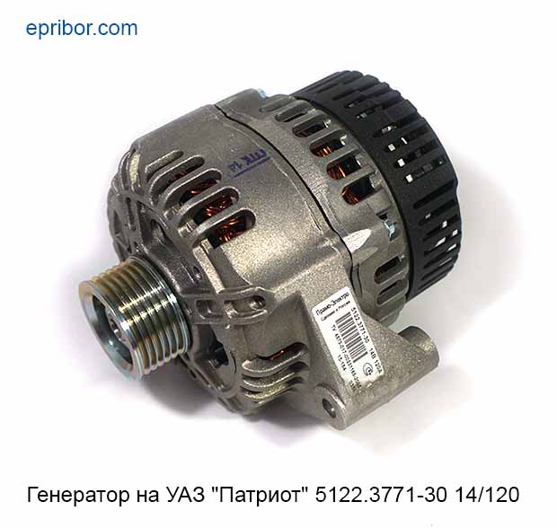 Генератор 5122.3771-30 14/120 на УАЗ "Патриот" дв.ЗМЗ 409.10 с кондиционером, дв.ЗМЗ 406.10,405.22 и их модиф., по лицензии фирмы "ISKRA"