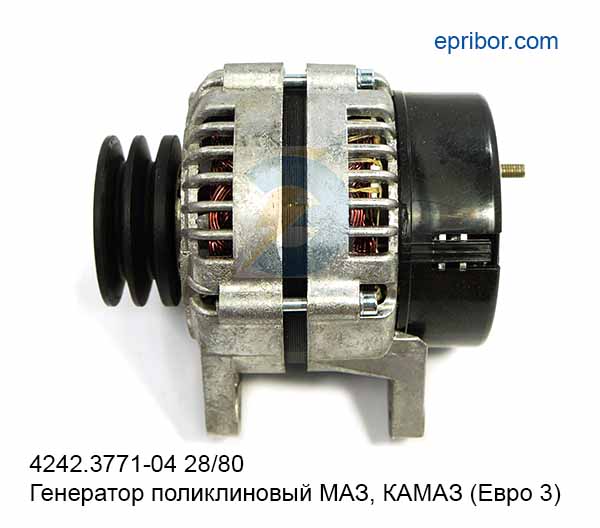 Генератор 4242.3771-04 со встроенным выпрямительным блоком и регулятором напряжения предназначен для использования в качестве источника тока в системе электрооборудования. Применяется на а/м