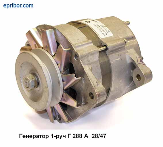Генератор 1-руч - трехфазный, синхронный генератор Г288А переменного тока со встроенным выпрямительным блоком, предназначен для работы в качестве источника электрической энергии паралельно с аккумуляторной батареей в системе электрооборудования автомобиля.