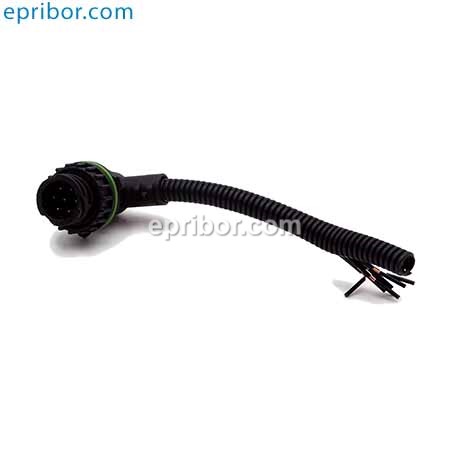 Герметичный 7-ми контактный L-образный байонетный AMP разъём с 7-ю проводами в гофре.