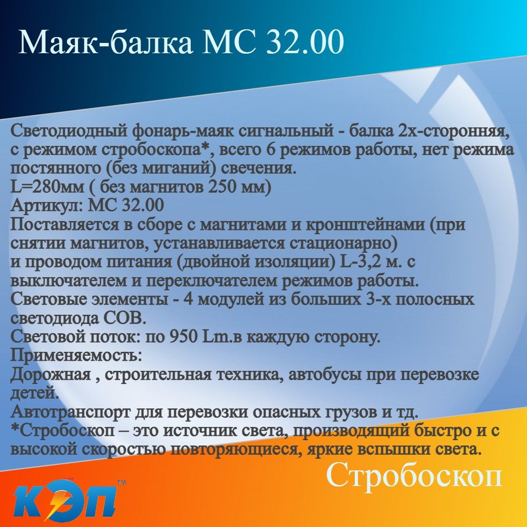 Светодиодный фонарь-маяк сигнальный - балка 2х-сторонняя, с режимом стробоскопа*, всего 6 режимов работы, нет режима постянного (без миганий) свечения.