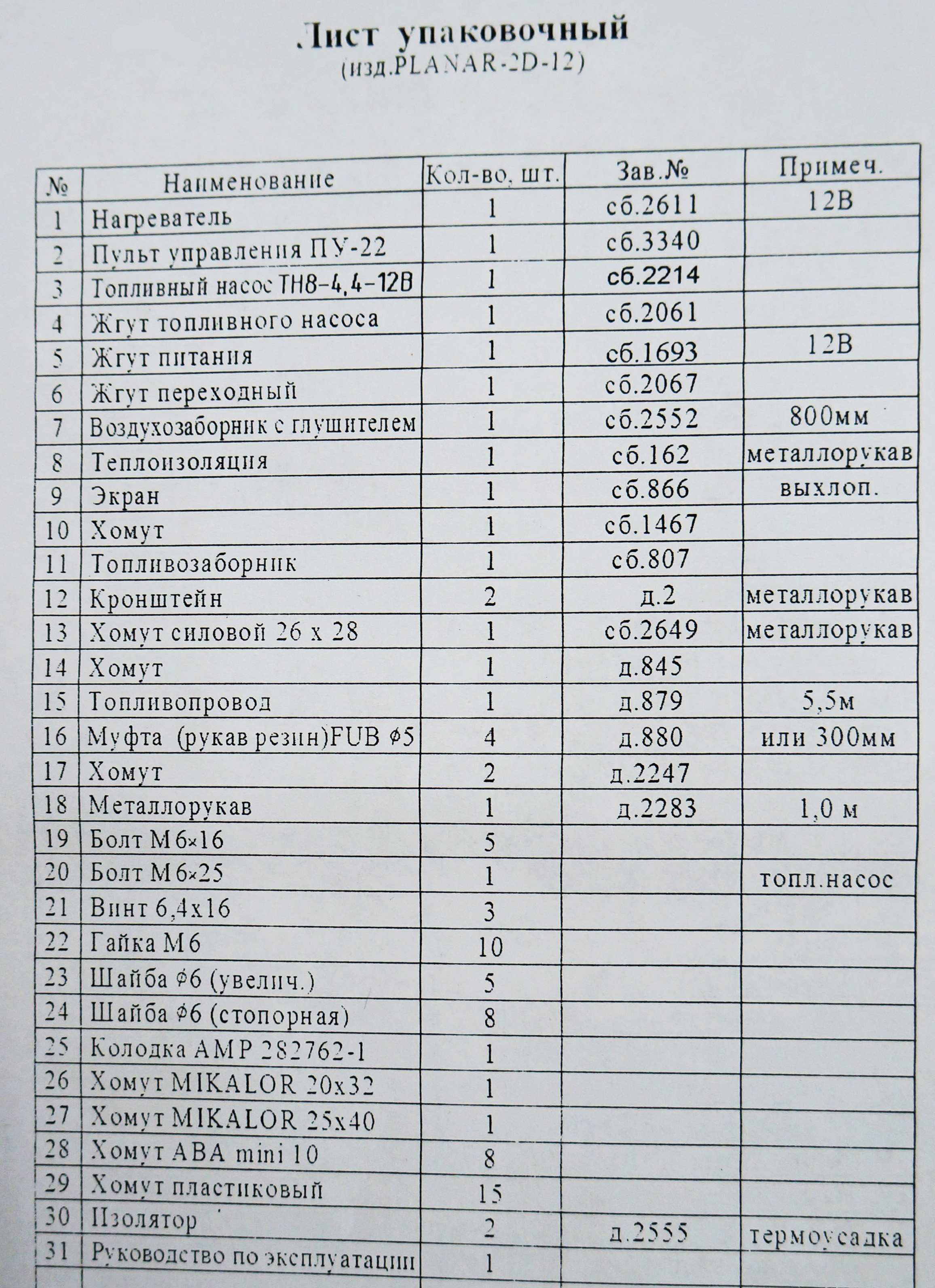 - жгуты проводов для соединения отопителя с аккумулятором автомобиля и установочный комплект,