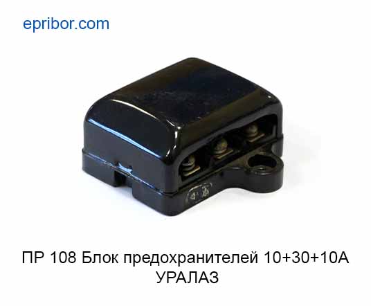 Блок плавких предохранителей ПР107 укомплектован плавкими предохранителяки на текстолиовых держателях 10А - 2 шт., 30А - 1 шт..