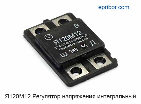 Регулятор напряженгия Я120М12 предназначен для автоматического поддержания постоянного номинального напряжения на выводах генератора при изменениях его частоты вращения и тока нагрузки.